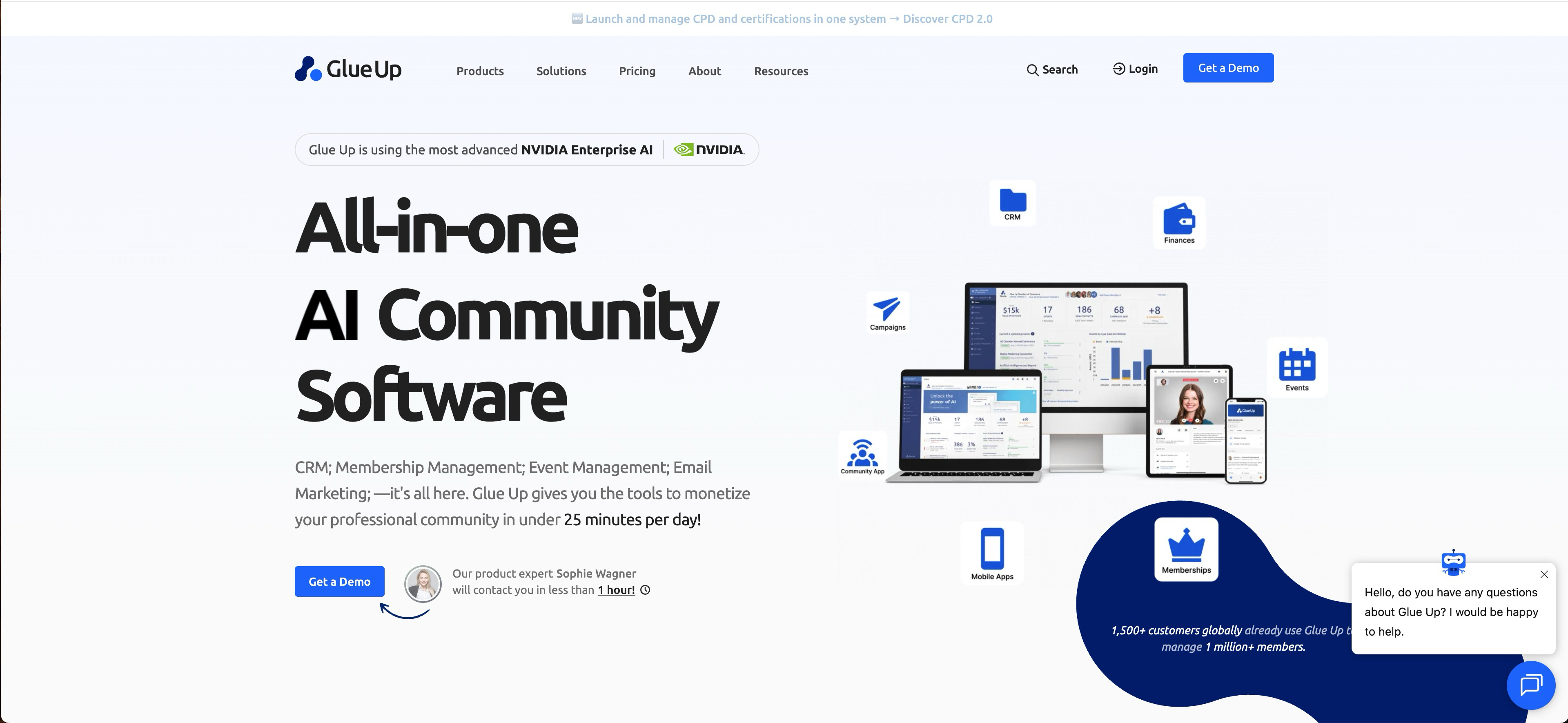 Glue Up combines community, CRM, and event management for associations and membership organizations. Instead of integrating separate tools, you get member data, event registration, email campaigns, and community discussions in one platform