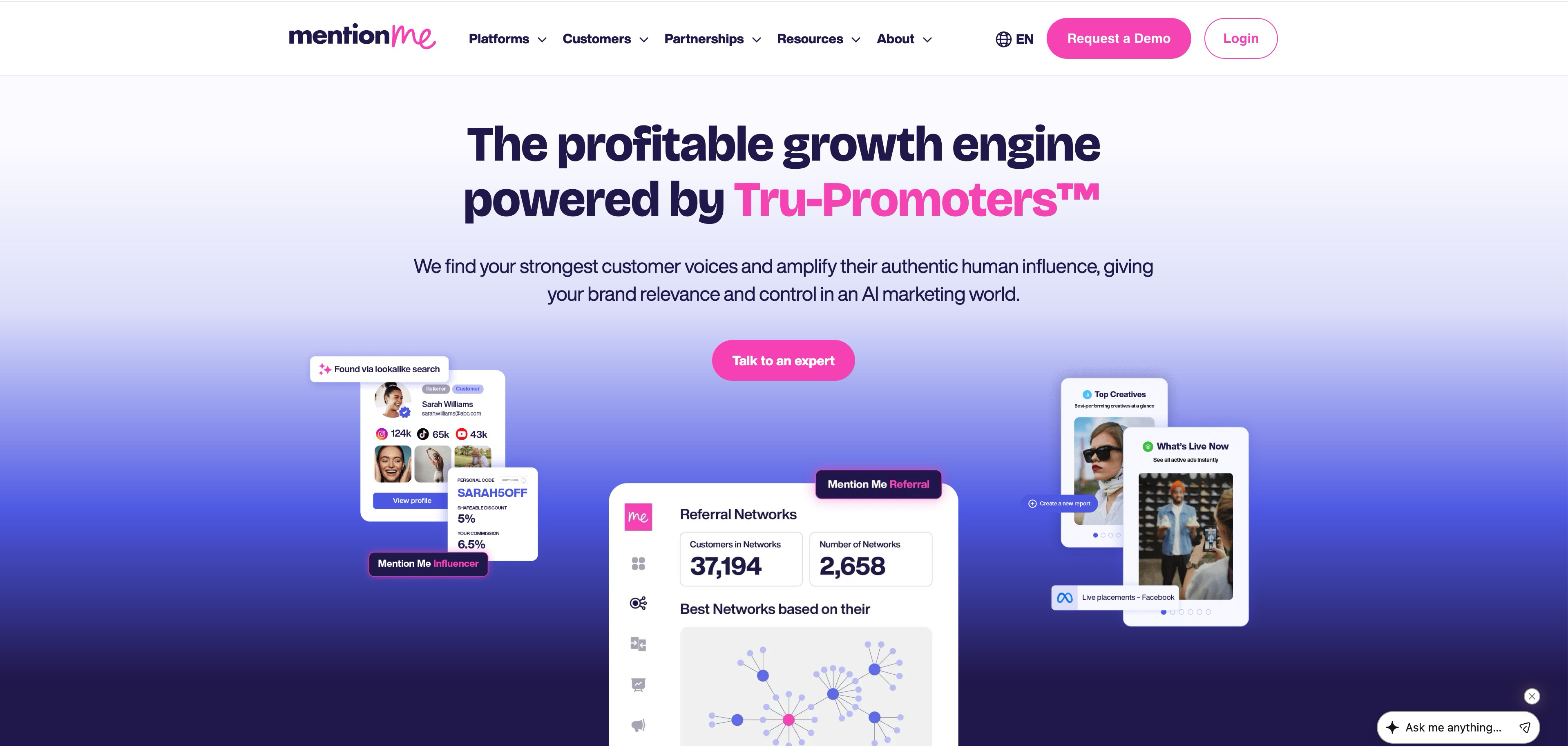 Mention Me is a referral marketing platform built for consumer brands and e-commerce. It offers sophisticated features like A/B testing of referral offers and "name sharing," which allows customers to refer friends simply by telling them to enter their name at checkout. Best for B2C and e-commerce companies looking to optimize referral performance.