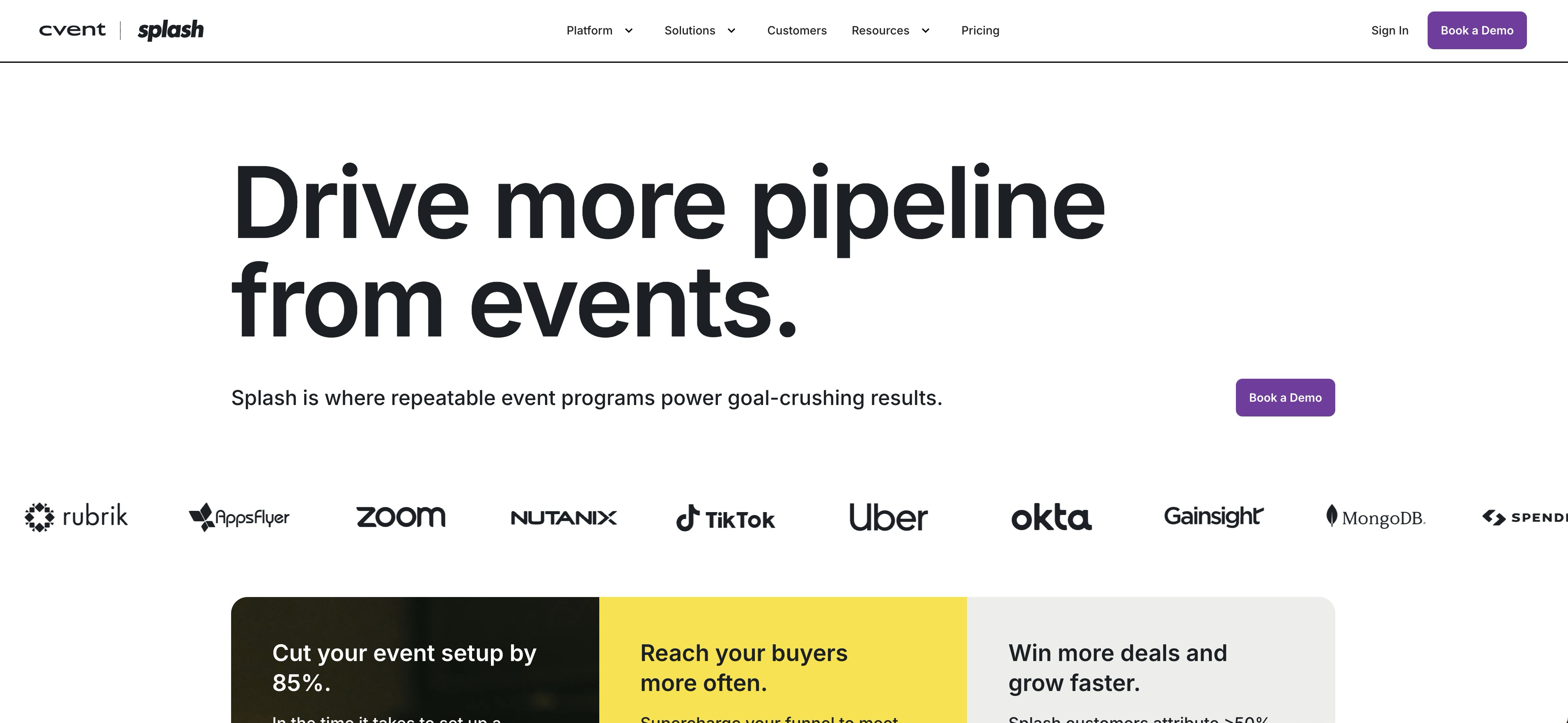 Splash is an event marketing platform focused on creating beautiful and engaging brand experiences. The platform works best for marketing teams running field marketing programs, product launches, and experiential events.