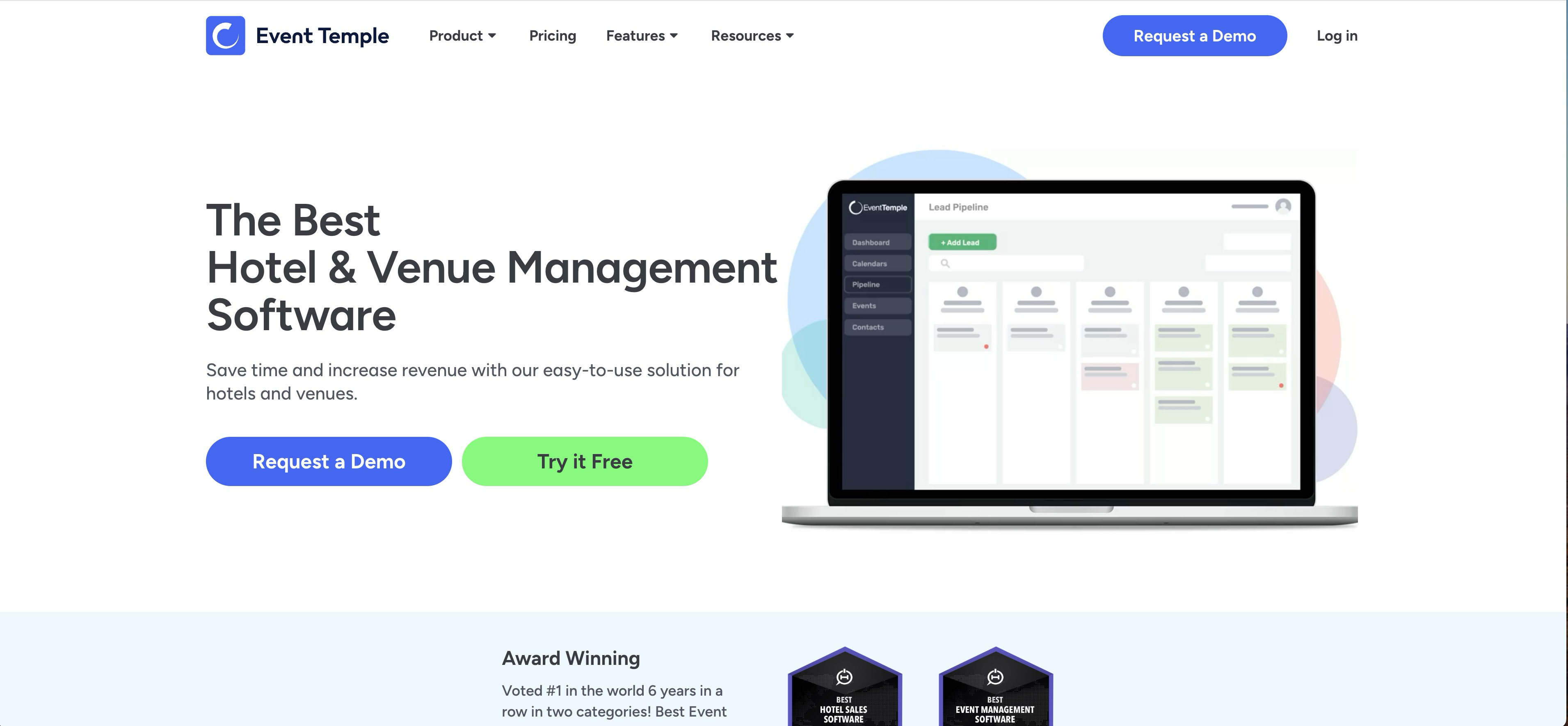 Event Temple is a modern venue CRM and event management software. The platform works best for hotel groups and large event spaces focused on sales and booking management.