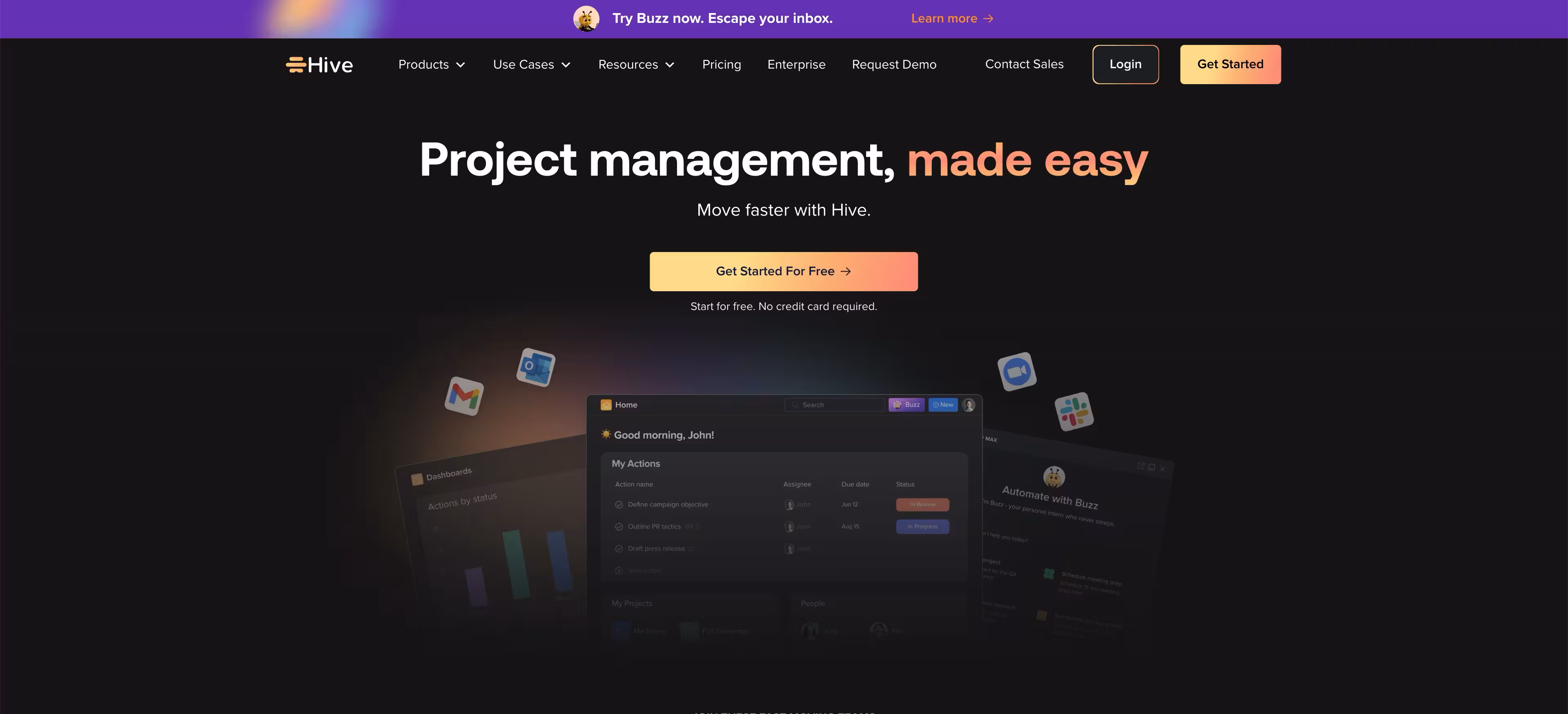 Hive is a project management platform with strong calendar functionality and an AI-powered task management in project tools (HiveMind) for task creation and content drafting. Calendar, Gantt, Kanban, and table views sit alongside native email, chat, and note-taking. The "action-oriented" positioning means Hive emphasizes task execution over planning - everything is built to move items forward.