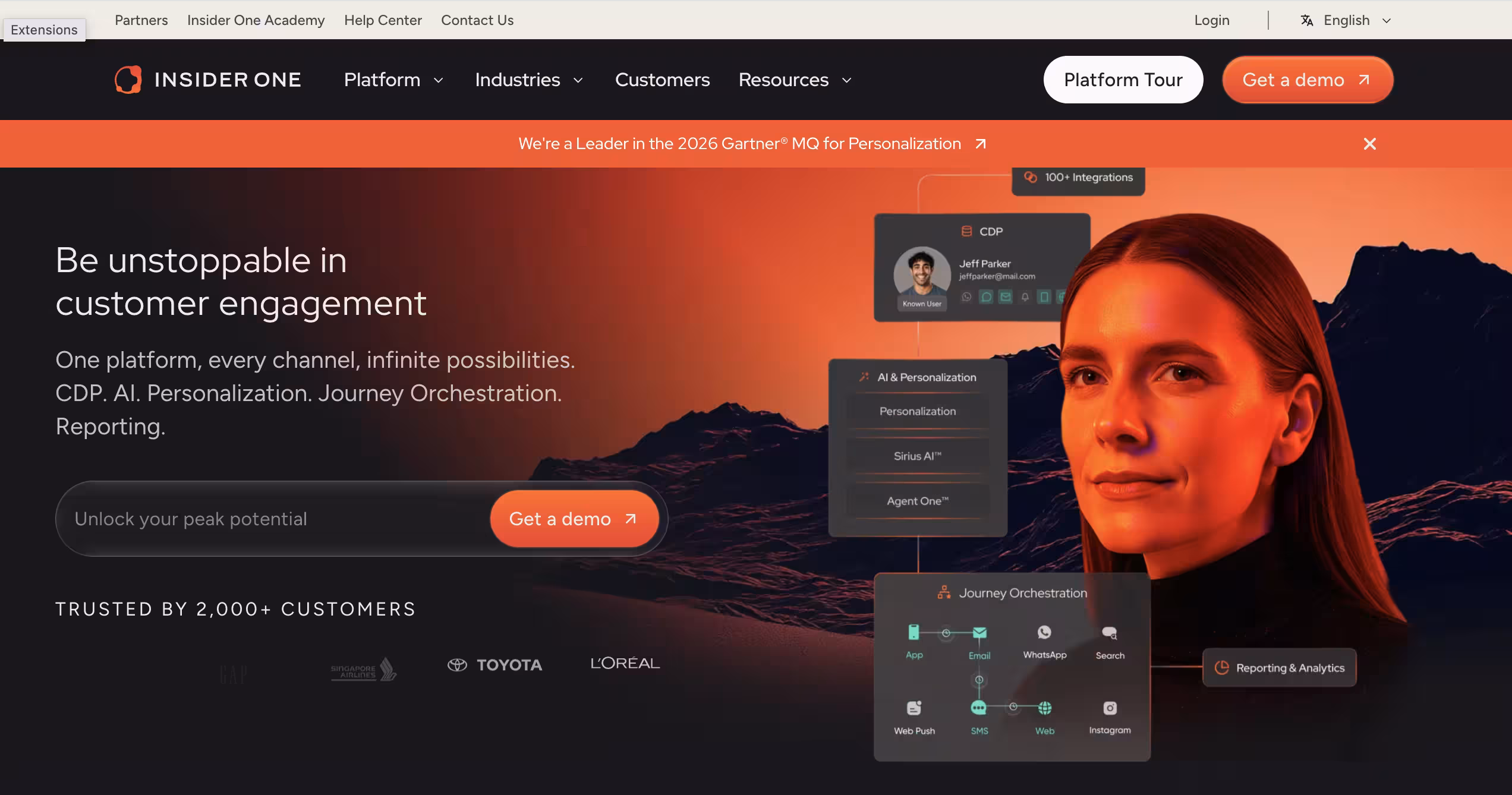 Insider is an omnichannel personalization platform with particular strength in mobile, web, and messaging personalization for consumer brands.