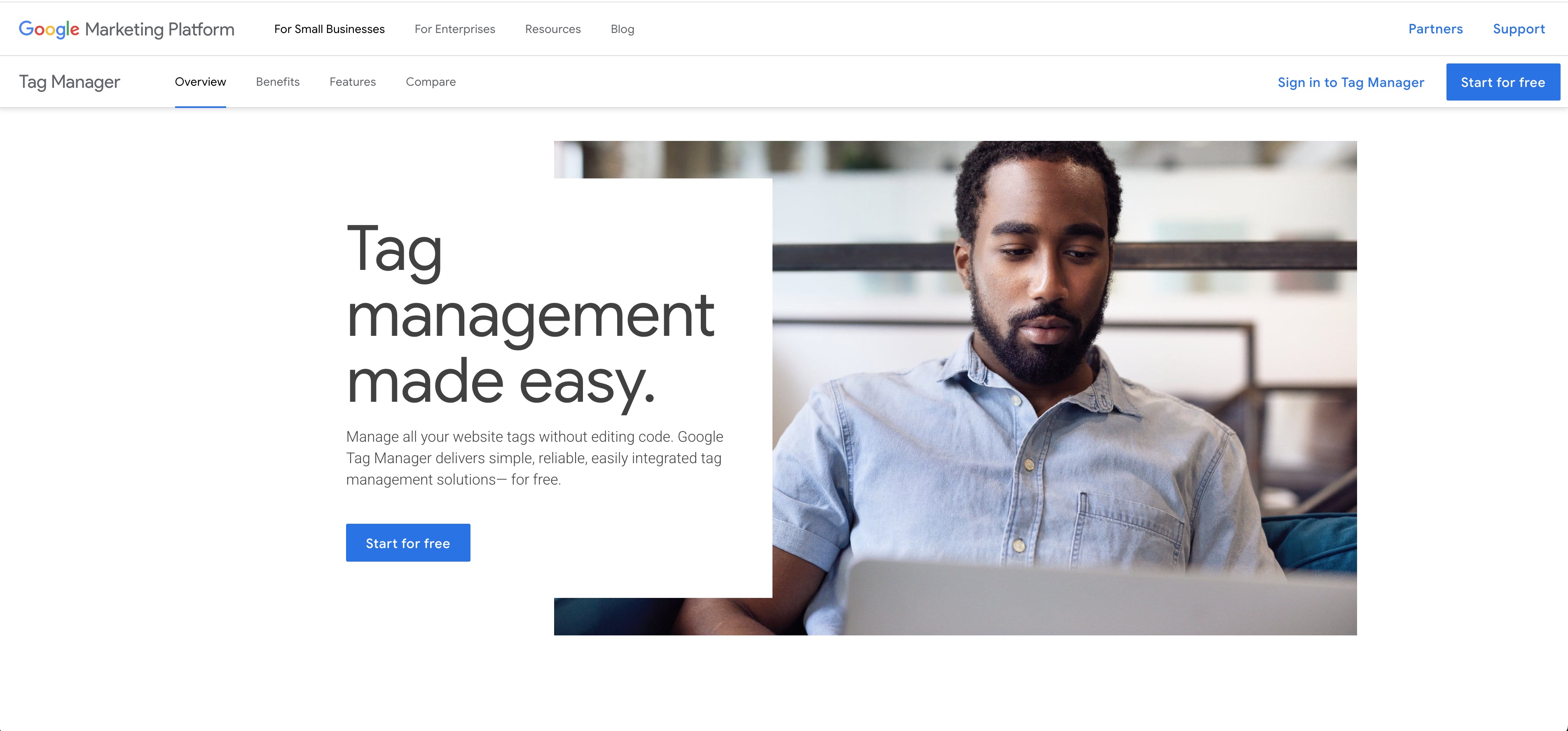 Google Tag Manager is the most widely used tag management system. It's free, integrates natively with Google's marketing and analytics products, and has extensive documentation plus a large community for support.