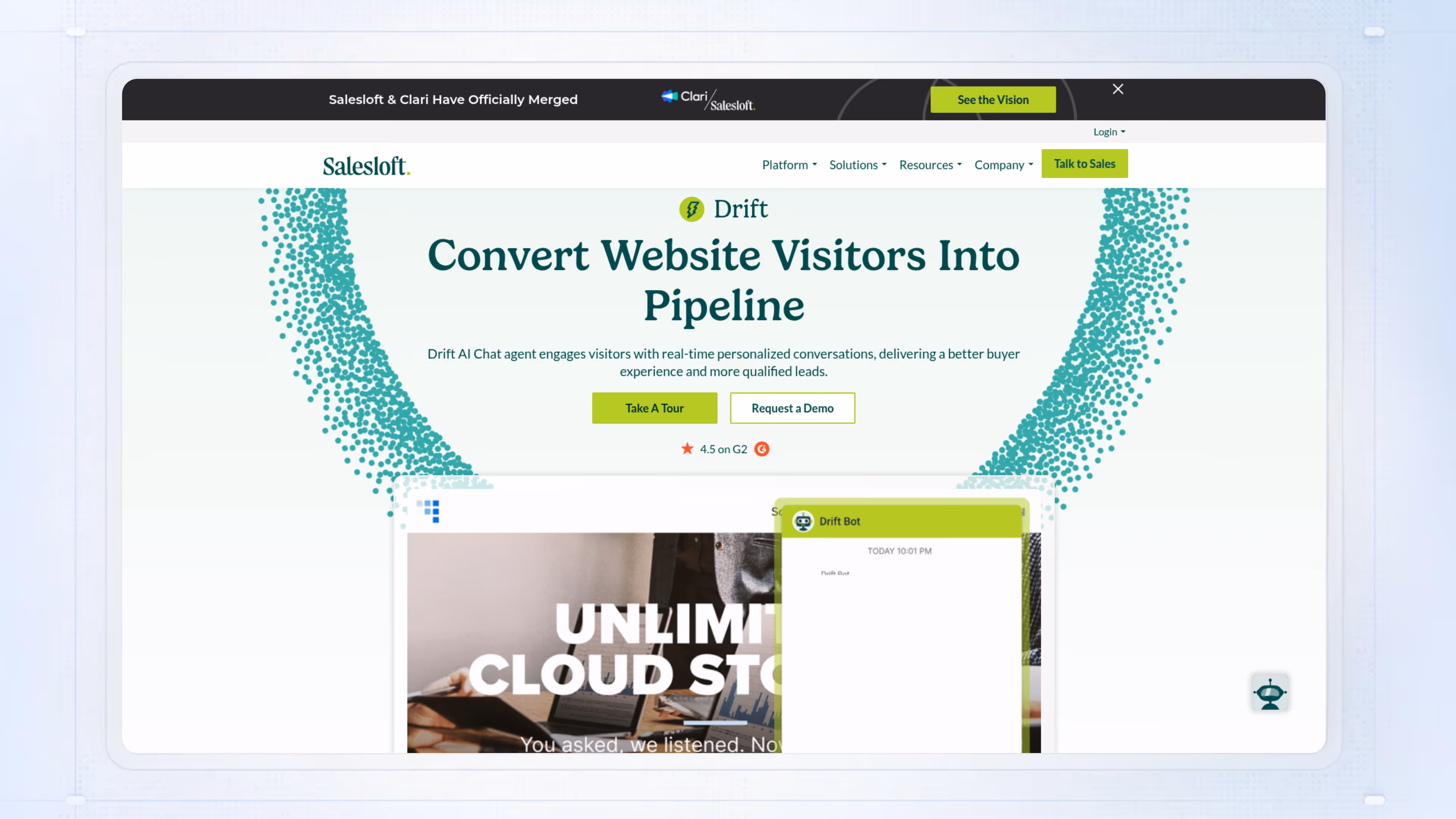 Conversational marketing platform with chat and bots. Drift focuses on using chat for both onboarding and lead qualification.