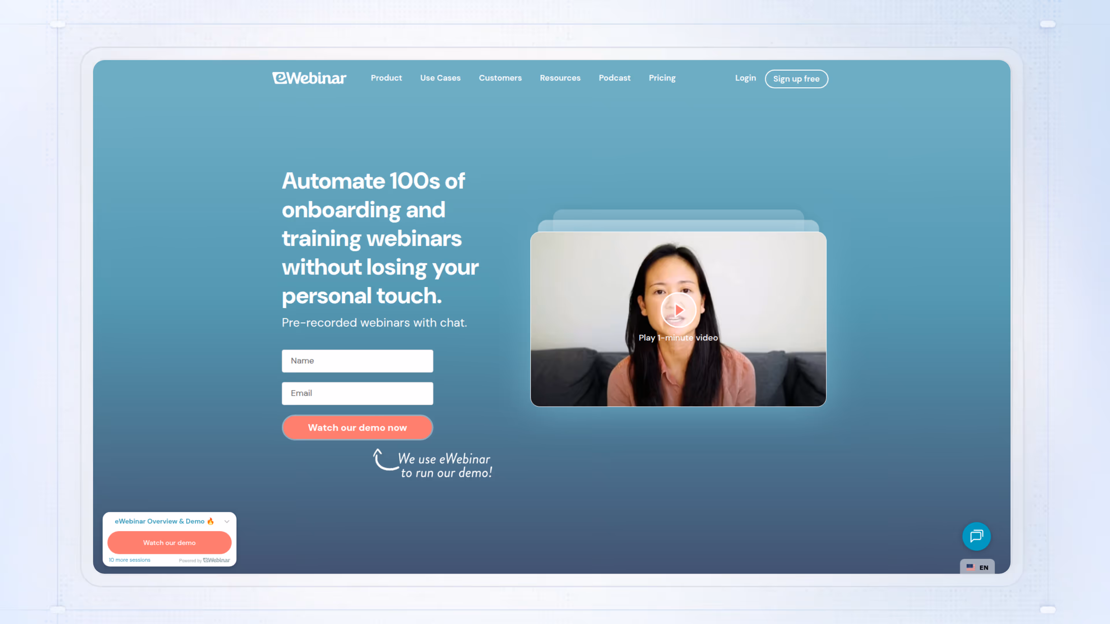Automated webinars that simulate live sessions. eWebinar lets you scale live-feeling onboarding without scheduling constraints.