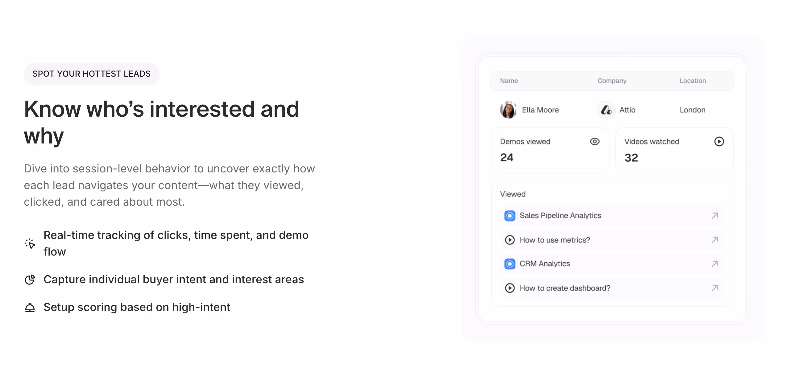 - Configure automatic customer interaction syncing and demo engagement tracking