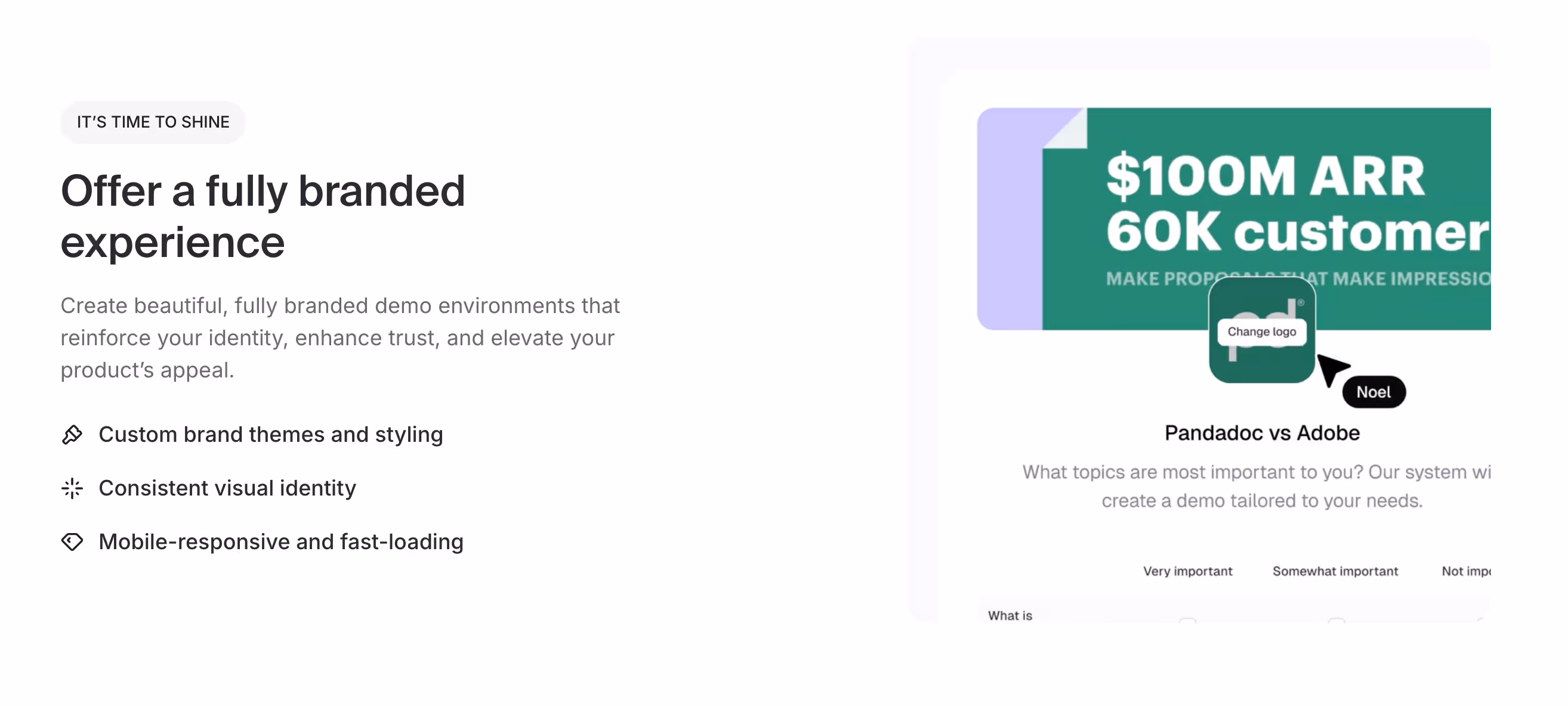 - Branded demo experiences maintain partner visual identity while showcasing products through professionally produced content that partners can confidently share with their prospects.