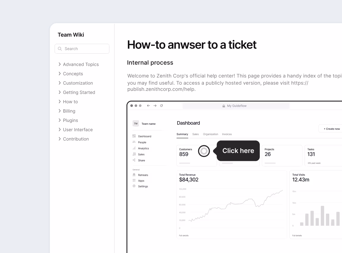 - In help docs and knowledge bases, replace static step-by-step instructions with interactive, clickable demos.