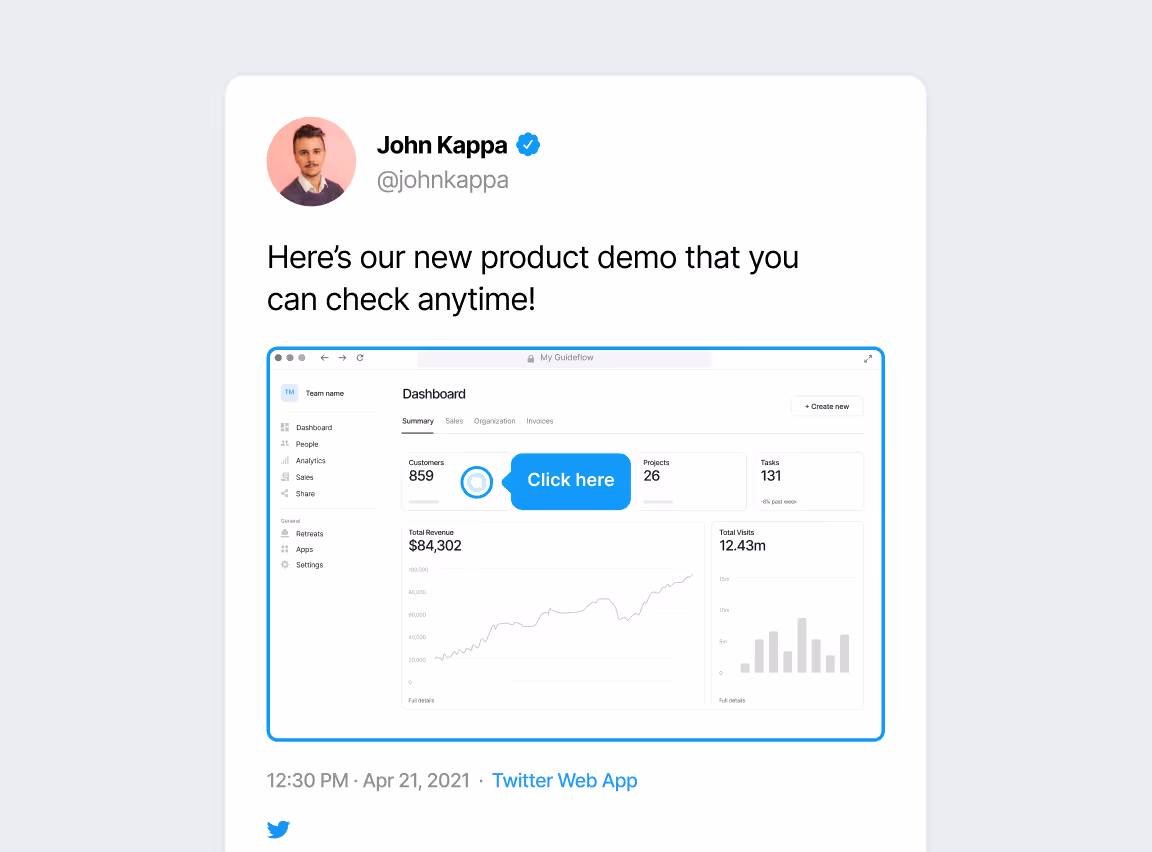 - After sales calls, share a customized follow-up demo for buyers to use internally.