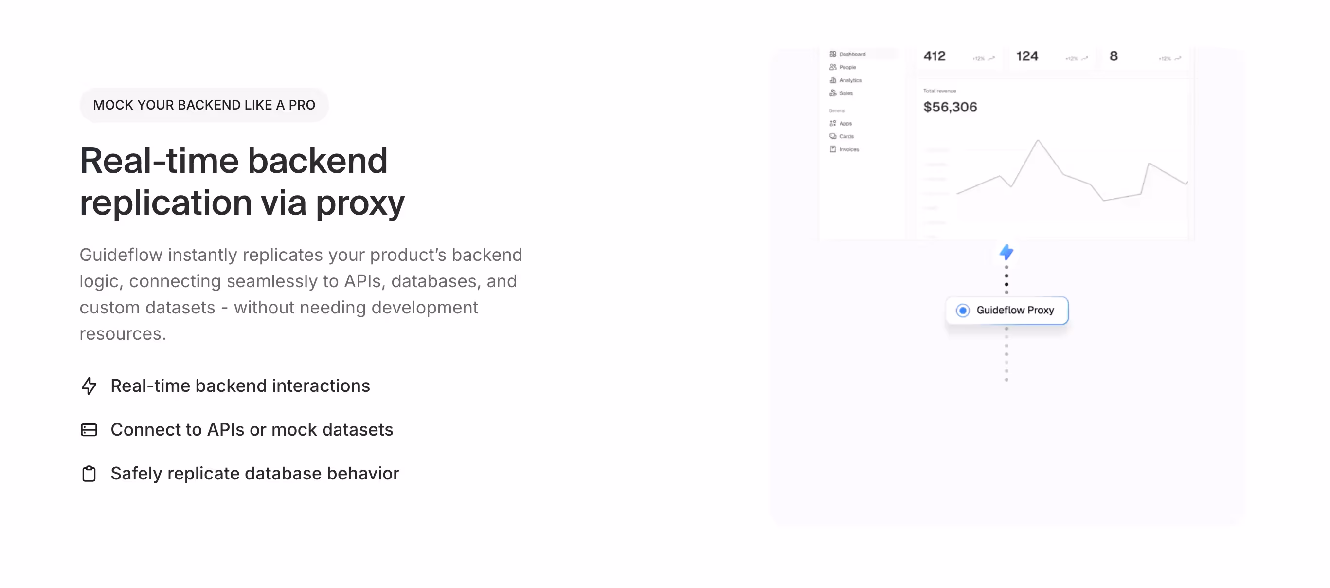 Seamlessly connect to APIs, databases, and custom datasets to deliver realistic backend responses and data interactions. The system safely replicates database behavior while maintaining complete isolation from production systems.