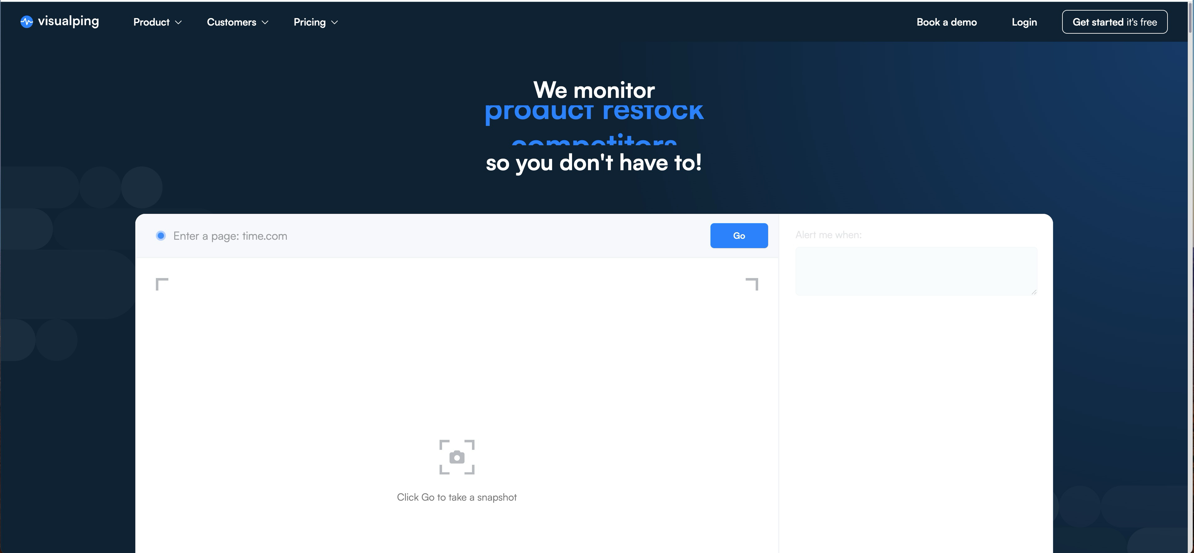 Visualping specializes in one thing: monitoring website changes. It's an accessible market intelligence solution for anyone tracking specific pages on a competitor's website, from pricing pages to careers pages for hiring trends.