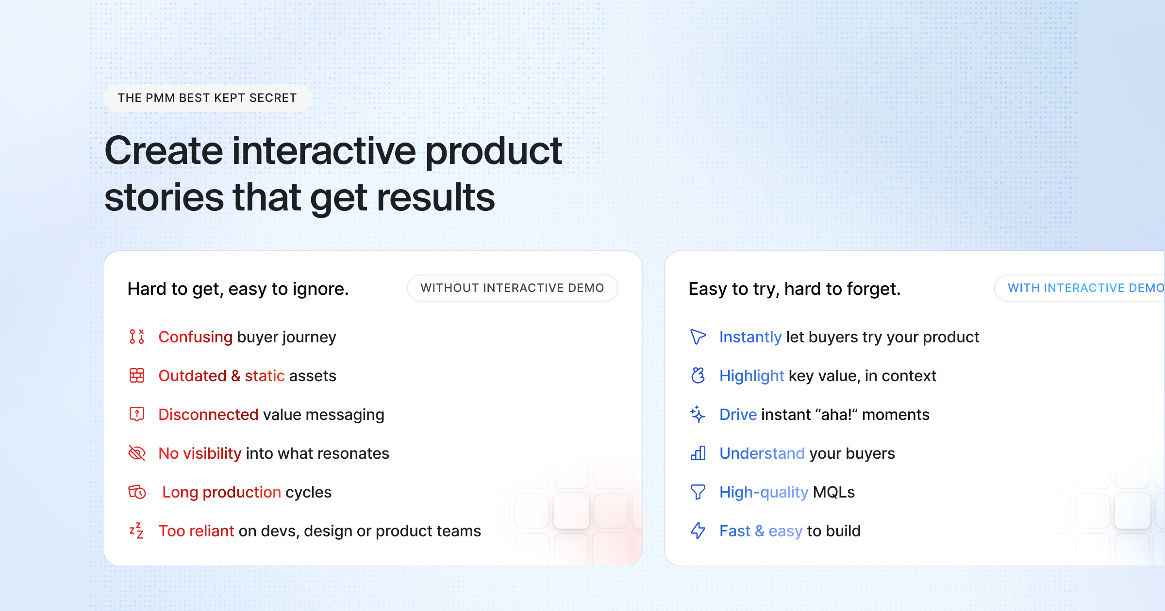 Interactive demos, will never replace the need for some good old fashioned positioning, launches and enablement - but they are an awesome way to get people educated on your product, and do it at scale so you don't have to spend all your time on one-on-one calls.