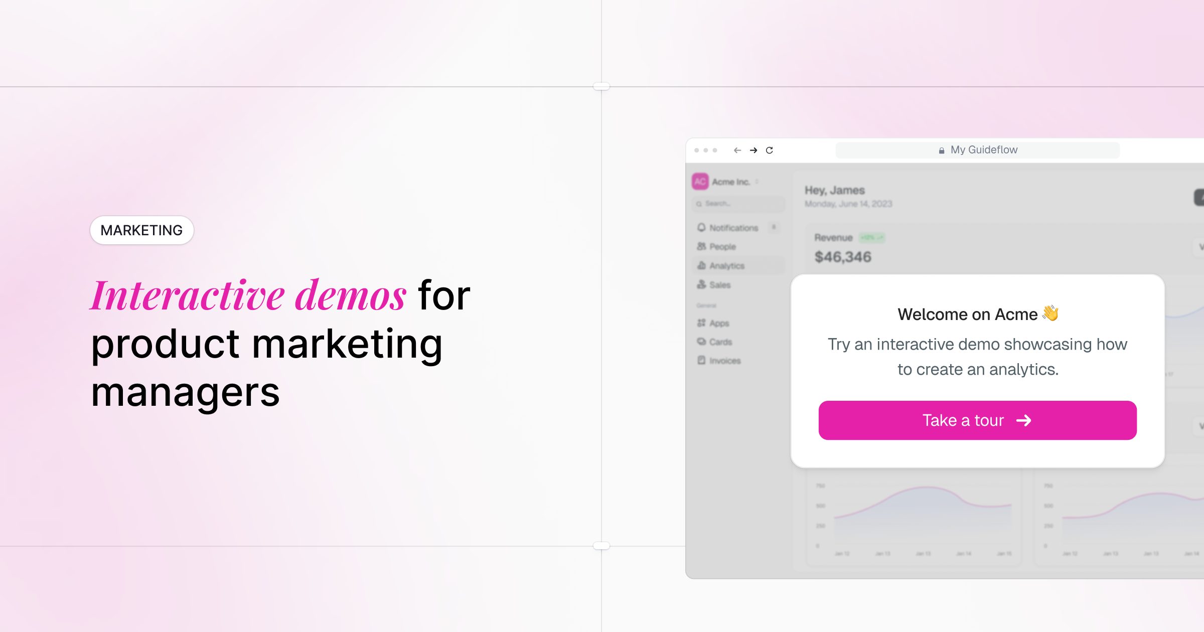 Tip: Interactive demos Interactive demos can scale sales enablement by letting prospects experience the product before a call. Tools like Guideflow help PMMs create self-serve product experiences without engineering resources.