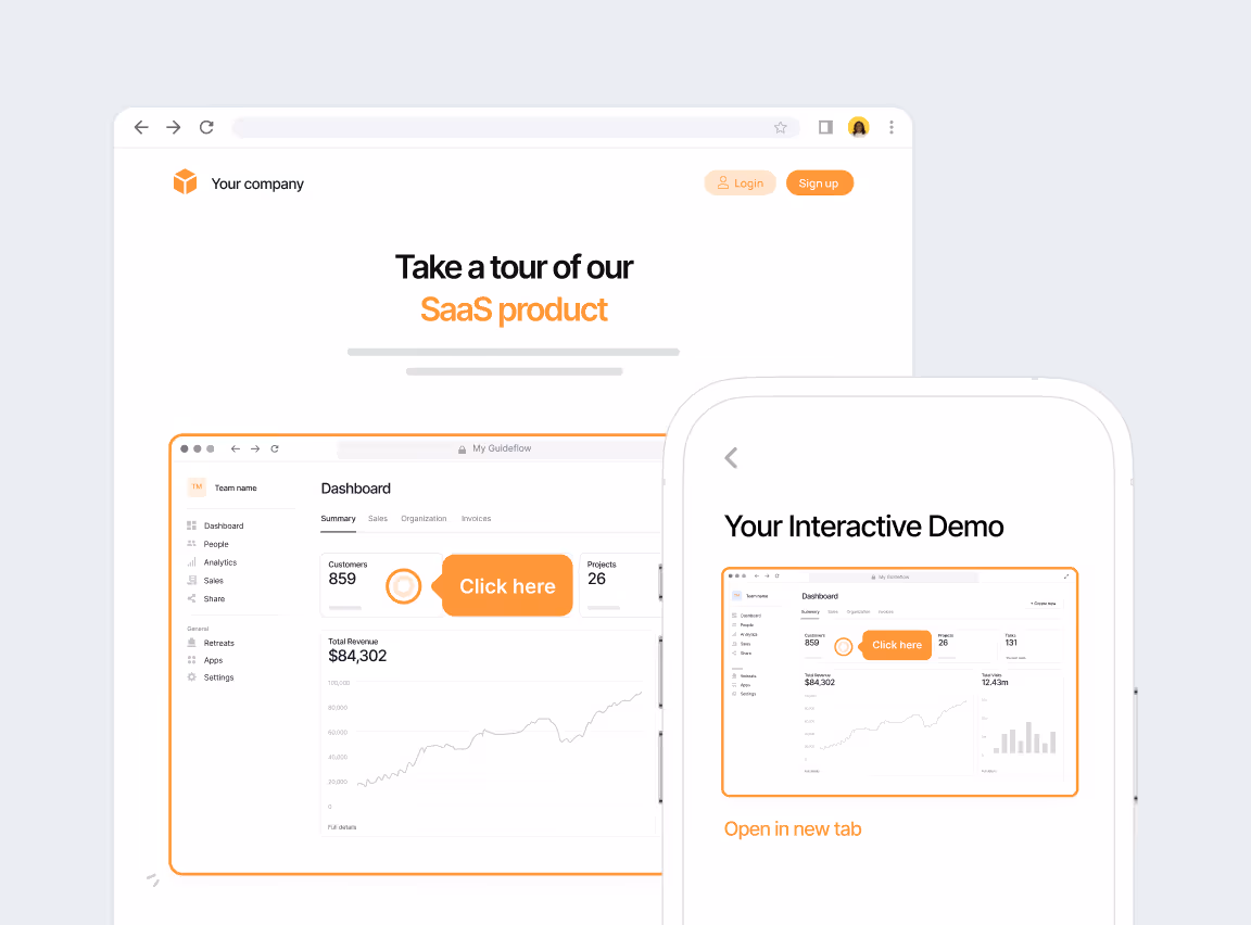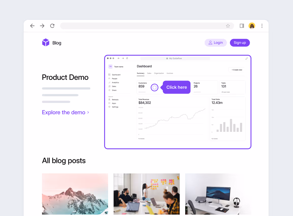 Embed interactive demos on your website to engage visitors and provide a tangible experience of your product.