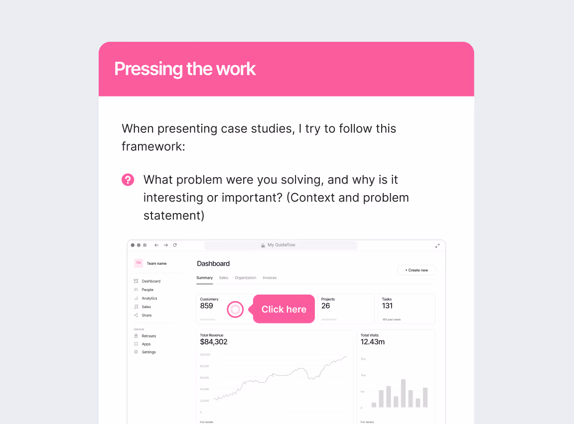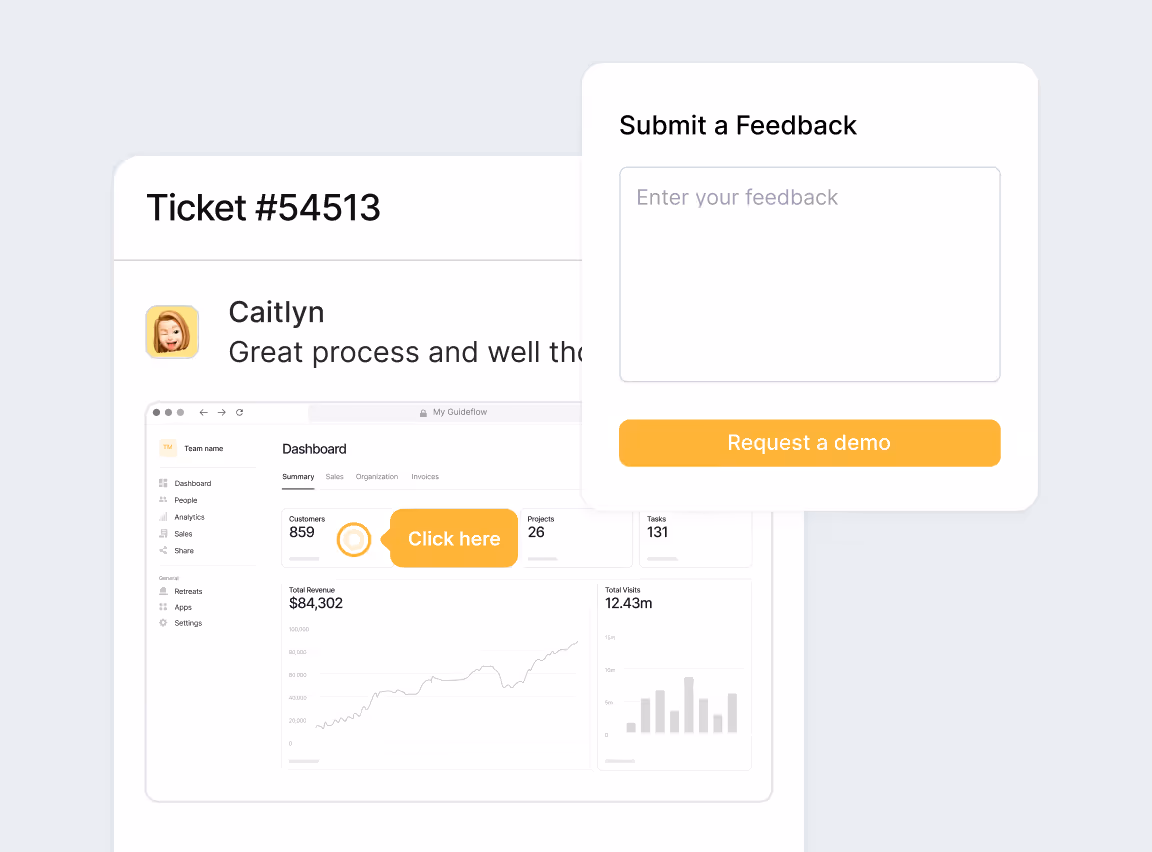 Use demos in your knowledge base or help center to visually guide customers through common tasks or troubleshooting steps.
