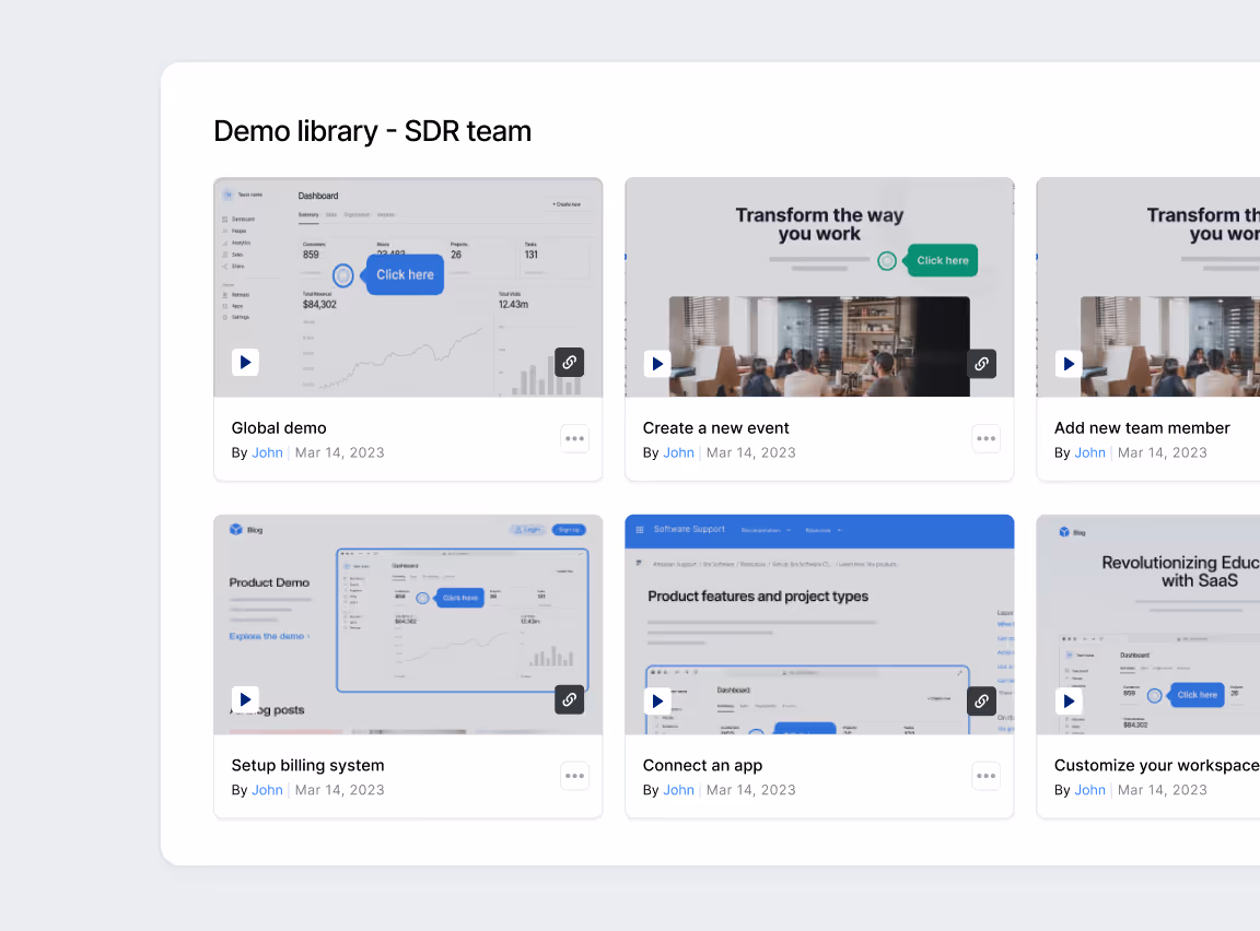 Equip your sales team with a library of demos tailored to different buyer personas, industries, or use cases.