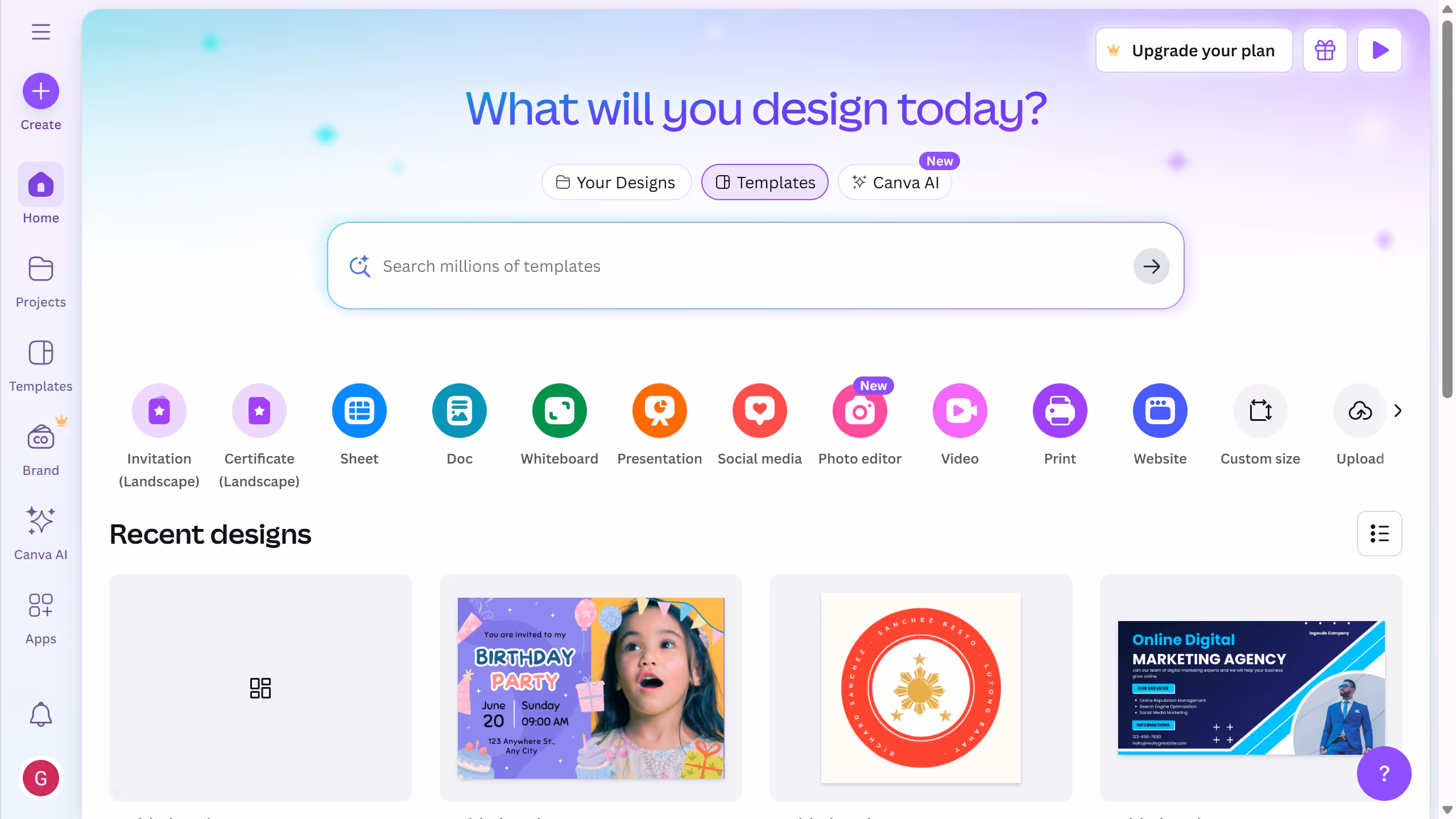 2. Click the "Create" button in the top right corner